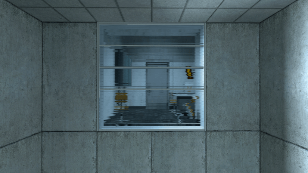 Finally you reach the finally puzzle at the end of which you will receive your cake. That doesn’t happen however and instead you are slowly lowered into a pit that is on fire with the expectation that you will be killed. Naturally the player escapes and is let loose throughout the internals of the facility. In one area you find the observation rooms in which there’s a projector showing how G.L.A.D.O.S. was made. She originally was a way to out compete Black Mesa.